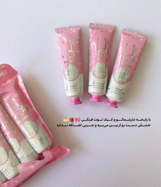 *کرم دست ۴ عددی جیبی یارا 🎀🌸🥹✨*_هر پک شامل ۴ عدد کرم میباشد ⛓️💥_با رایحه مارشمالو و کیک توت فرنگی 🍰🍓 میتونید همه جا با خودتون ببرید بافت کرمی داره و اصلا چرب نیست خیلی نرم و آبرسانی میکنه 🤩